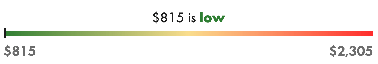 The price bar shows the full price range we’ve tracked for that exact handbag — same model, size, material, and condition.
